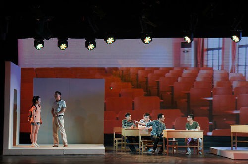 这并不是《致青春》的第一次公演,早在一个月前,原名为《青春变奏曲》的情景剧就在同一地点向观众揭开了它的神秘面纱。由于表演获得成功,在六月毕业季里,《致青春》剧组趁热打铁,在校内征集观众意见进行修改后,将该剧再一次搬上了舞台。