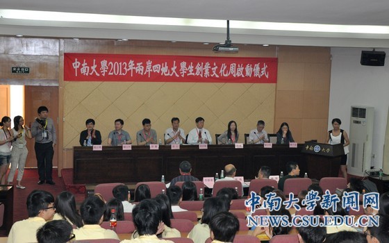 6月24日上午,中南大学2013年两岸四地大学生创业文化周在升华101会议室启动,来自港澳台15所高校及我校的200余名师生代表参加启动仪式。校党委副书记高山出席启动仪式并致辞。