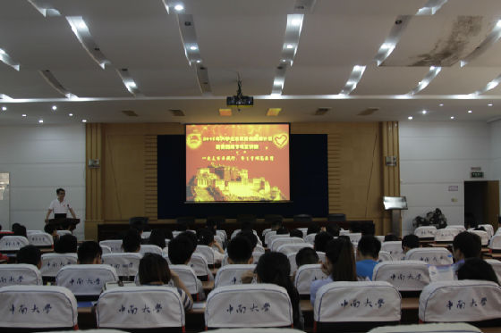 5月12日上午,“一次美丽西藏行,终生雪域高原情”——2015年大学生志愿服务西部计划服务西藏专项宣讲会在校本部民主楼小礼堂举行。宣讲团团长共青团西藏自治区委员会权益部副部长扎西卓玛,副团长共青团昌都市委员会副书记杨德西和来自志愿者队伍的优秀大学生代表们,为与会的中南大学师生作了一场生动的报告。