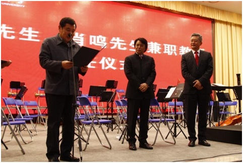演出开始前,学校举办了于海先生和肖鸣先生担任学校兼职教授的聘任仪式,校党委高文兵书记为其颁发聘书,两位老师表示,会与学校一道,为促进广大青年学子文化素质教育工作而努力。