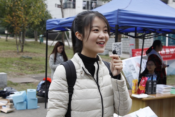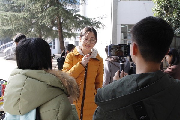 面对摄像机镜头的同学们真是一点也不怯场,认真从容答题,答题后工作人员给出成绩,对没有答对的题目,同学们及时向身边人请教或者上网查找正确答案。来自土木工程学院的17级孙泽川同学得知活动地点后特意赶来他大三将要搬到的铁道校区:“借这次机会我来到铁道校区,发现铁道校区充满了一种素雅的学术氛围,我很喜欢。小团子着实为铁道校区带来了一丝活力,用这么新鲜有趣的形式宣传十九大精神,真是有一种热烈喜庆的氛围呀!”