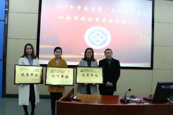 经过答辩评审,土木工程学院、商学院、文学与新闻传播学院、湘雅医学院、材料科学与工程学院、湘雅护理学院、法学院、湘雅口腔医学院、信息科学与工程学院、资源与安全工程学院获得“中南大学2017年暑期社会实践优秀单位”称号,答辩会现场为获奖学院颁发奖牌。