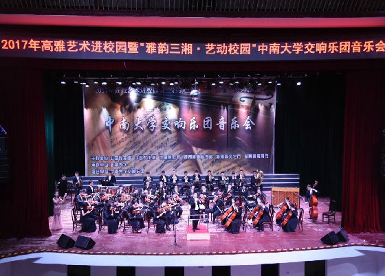2017年5月7日、12月2日和12月10日,中南大学学生艺术团交响乐团先后在湖南警察学院、湖南中医药大学和湘潭大学完成了三场教育部、文化部、财政部主办的“高雅艺术进校园”活动。这一系列专场演出的成功举办,不但为广大三湘学子带来了一场场精妙绝伦的听觉盛宴,同时也促进了各高校之间文化艺术的交流与合作。
